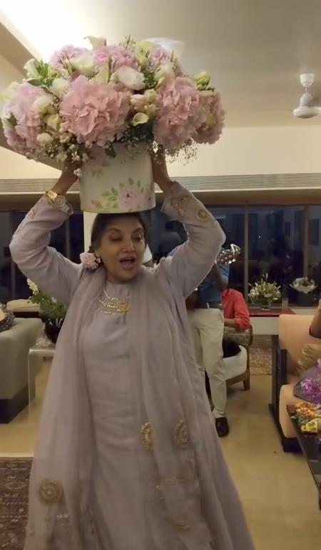 Putting her reputation as a serious actor at risk, the video uploaded by Shabana showed her dancing her heart out with a flower pot on her head. All those in the clip were seen grooving to the peppy old track "Aaja Aaja Main Huin Pyar Tera" from the 1966 drama "Teesri Manzil".