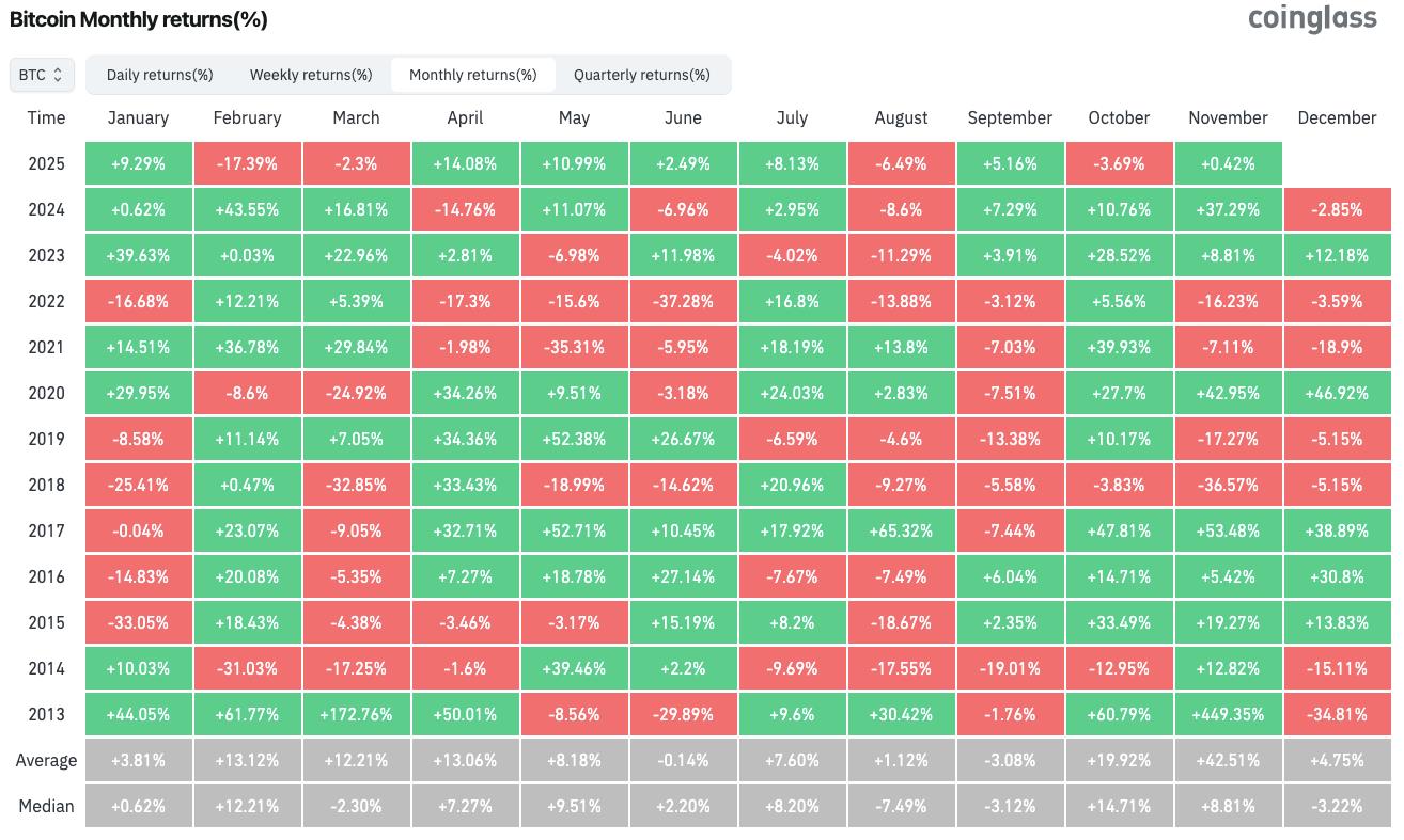 BTC/USD monthly returns (screenshot). Source: CoinGlass