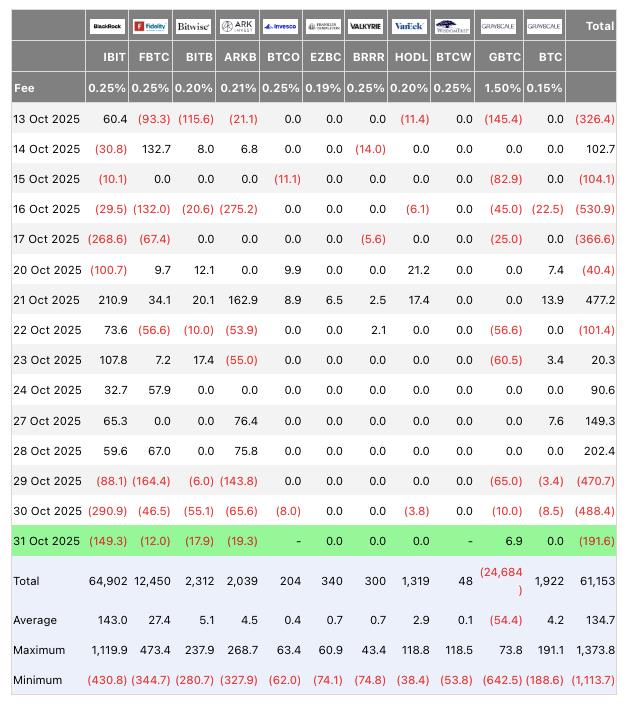 BTC /USD one-hour chart. Source: Cointelegraph /TradingViewBitcoin demand weakness ends October on a cautious noteRecent data from Cointelegraph Markets Pro and TradingView reveal that Bitcoin's price is attempting to recover from Friday's declines, driven by persistent sell pressure throughout the week across US exchanges and Bitcoin ETFs.