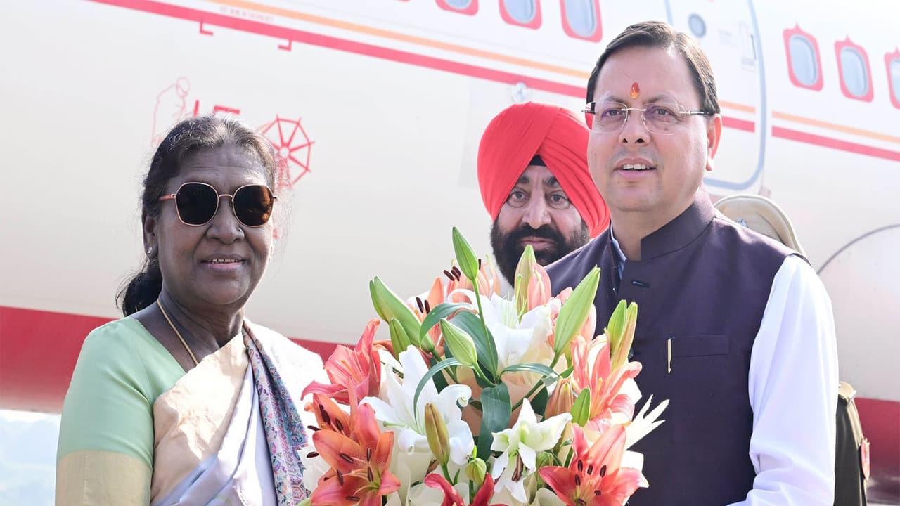 President Droupadi Murmu was accorded a warm welcome by Uttarakhand Governor Lt. Gen. Gurmit Singh (Retd.) and Chief Minister Pushkar Singh Dhami upon her arrival in Dehradun on Sunday. During her visit to the state, the President will attend the second convocation ceremony of the University of Patanjali in Haridwar.