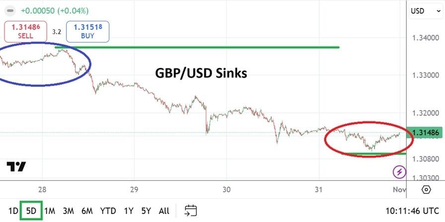 (MENAFN- Daily Forex) After starting the past week of trading near the 1.33500 level and making its ways towards the 1.33700 vicinity briefly on Tuesday, the GBP/USD started to see headwinds press down upon its value. Financial institutions which had been leaning into the sentiment the U.S Fed would cut its interest rate this past Wednesday were proven to be correct, but any ambitions that the Federal Reserve would say they intend on cutting interest rates again in December were not heard.Large traders which had been holding onto the outlook the Fed would have to be aggressively dovish the past handful of weeks, which kept the GBP/USD in elevated territory (albeit choppy conditions consistently) had cold water thrown onto their Forex positions on Wednesday. GBP/USD action started to show signs of nervousness on Tuesday as it incrementally traded lower, and those fears were substantiated on Wednesday.Top Forex Brokers1 Get Started 74% of retail CFD accounts lose money Support Levels Prove Targets are VulnerableEven as the Federal Funds Rate from the U.S was cut by 25 basis points to 4.00% on Wednesday, the GBP/USD proved the 1.33000 was not sustainable on Tuesday as nervousness built, and as the Fed delivered its policy statement the 1.32000 level proved vulnerable. By Thursday the 1.31200 ratio started to be challenged and Friday's lows for the GBP/USD went to the 1.30970 vicinity. The Fed used the excuse of the U.S government shutdown for its lack of backbone regarding an additional interest rate cut in December.While Jerome Powell, the Federal Reserve Chairman, kept the door open to all posibilites regarding interest rate decisions in December, financial institutions came away feeling rather unimpressed with the lack of clarity. The USD became stronger across Forex and the GBP/USD correlated well to the broad market and sank rather dynamically. The U.S government shutdown appears set to continue into this coming week with the ability to remain a stubborn political issue with no resolution Institutions Shown Speculative NaturesFor those who do not think large banks speculate themselves on Forex values and merely let their clients wager on prices, it should be remembered financial institutions are active in commercial cash forward positions for their corporate clients.