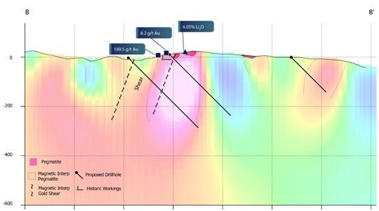 -    New Magnetic and 3D Inversion Data Strengthen Geological Model: The Company's exMAG drone survey and 3D inversion identified a large, consistent magnetic high coinciding with gold mineralization along the Rusty Shaft shear corridor, and magnetic lows correlated with lithium-bearing pegmatites. These results reinforce the presence of a deep-seated mineralized system spanning more than 1,000 m (see Lion Rock news release dated August 11, 2025).