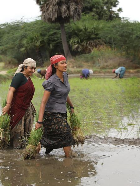 She wrote, "Welcome to a @mariselvaraj84 movie set. When I said 'Bison' was beyond cinema, this is what I meant. It was a journey through the soil, the people, and the spirit of a place that changed something in me. Every day felt like a workshop- learning, unlearning, and living among stories that breathe truth. Thank you, Mari sir, for letting me be a small part of your world, where cinema feels like life itself. Love you my pookies @dhruv and @rajishavijayan."