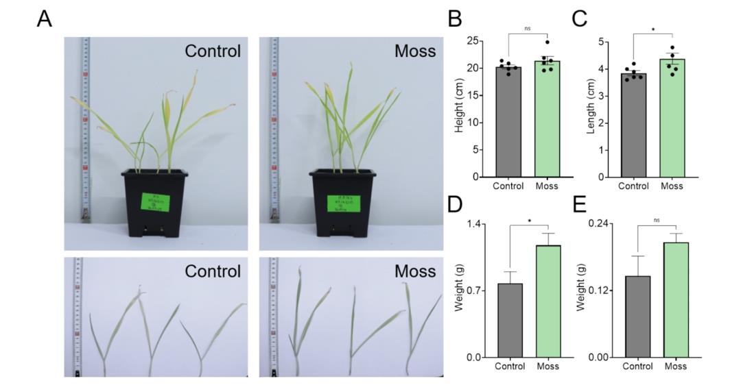 Without moss, plants could not grow due to the coarse particles and low porosity of lunar soil. But when moss was introduced, it acted as an ecological buffer, creating a stable microenvironment where barley plants thrived - their stem length and biomass more than doubled.