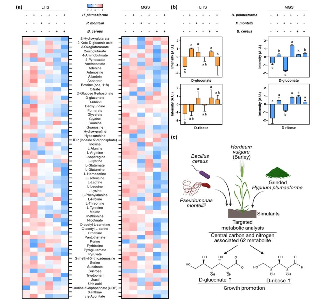 The team also found that in the moss–microbe system, plant roots accumulated D-ribose and D-gluconate, essential for energy and tissue formation - effectively re-engineering barren soil chemistry to restart life activity.