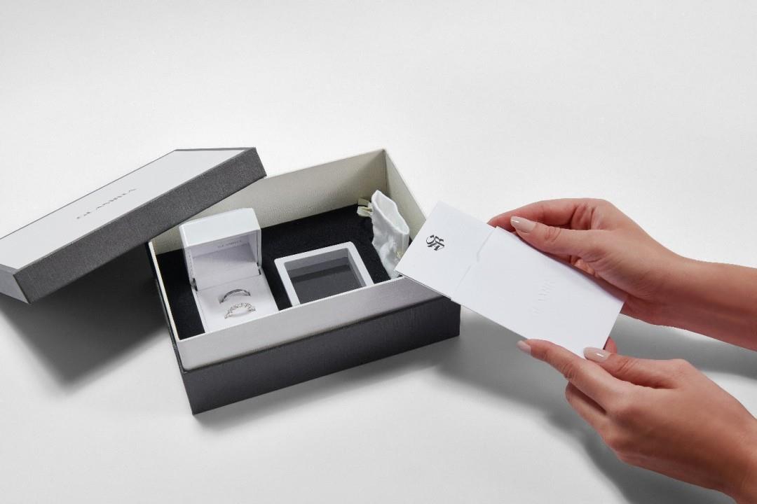 A gifting moment – unwrapping a Glamira jewellery box containing lab-grown diamonds, perfect for any occasion.
