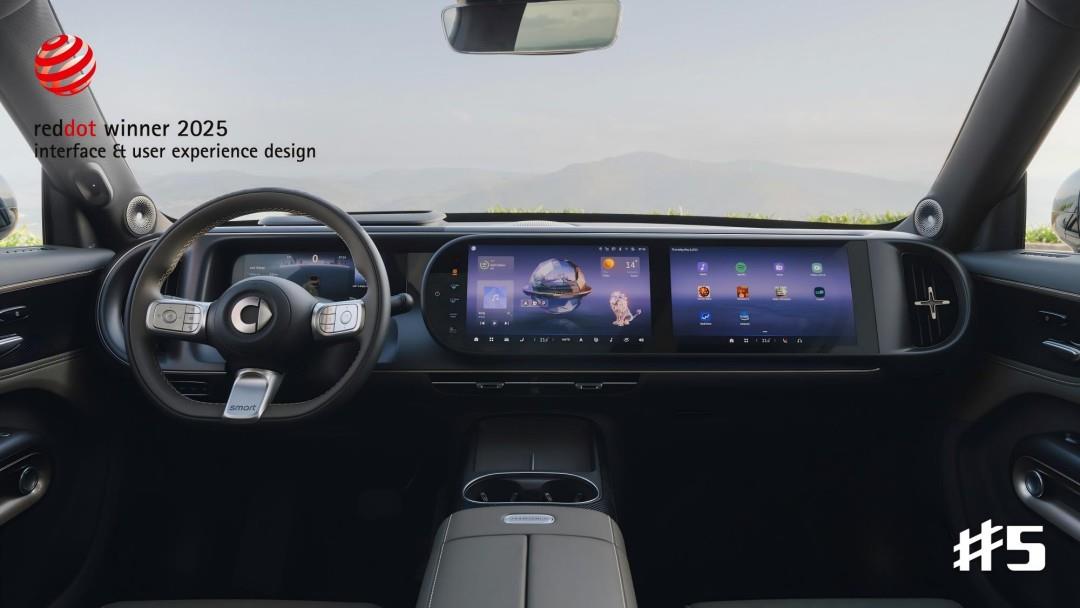 The smart #5 has been honored with the“Red Dot Award: Brands & Communication Design” for its human-machine interface (HMI)