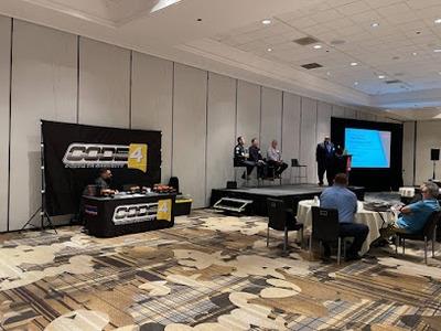 "A conference room setup with CODE 4 Private Security banners and tables, a speaker presenting on stage, and an audience seated at round tables."CODE 4 PRIVATE SECURITY - BEST SECURITY GUARDS - LAS VEGAS introduces a comprehensive accountability framework for Nevada and California clients, featuring performance metrics, transparent pricing, credential verification, and real-time reporting systems.