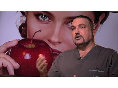 "Dr. Sargon Lazarof of Sargon Dental speaking in front of a large image of a woman holding an apple."Sargon Dental implements FDA-cleared immediate-load technology, enabling same-day functional tooth replacement and eliminating traditional waiting periods for implant patients.