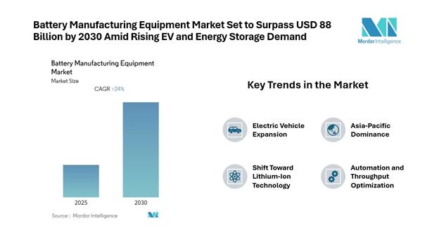 Global Battery Manufacturing Equipment Market Growing At CAGR Of 24.00% By 2030, Driven By EV Demand And Asia-Pacific Expansion, Reports Mordor Intelligence