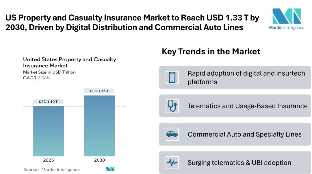 "United States Property and Casualty Insurance Market"Mordor Intelligence has published a new report on the United States Property and Casualty Insurance Market, offering a comprehensive analysis of trends, growth drivers, and future projections.