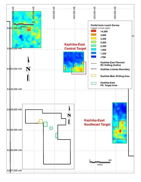 Plan Map illustrating Kazhiba East Partial Ionic Leach Targets and Outline of Planned RC Drilling targets