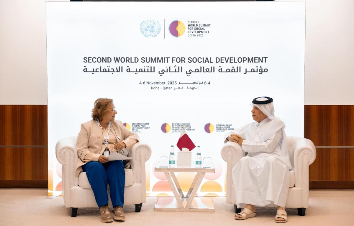 Doha, Qatar: Minister of State for Foreign Affairs HE Sultan bin Saad Al Muraikhi met Tuesday with Minister of Foreign Affairs of the Republic of Colombia HE Rosa Yolanda Villavicencio Mapy, on the sidelines of the Second World Summit for Social Development, currently held in Doha.