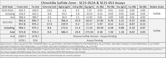 Drillhole SE25-053 returned the first massive sulfide intercepts in the project's history with a highlight intercept of: