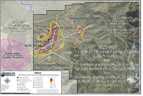 Chad Peters, Ridgeline's President, CEO & Director commented, "This is an exciting day for Ridgeline with our maiden drill program at the Chinchilla Sulfide target delivering a high-grade CRD discovery. Hole SE25-053 has intersected multiple massive sulfide horizons within the kilometer-scale MT anomaly that defines the Chinchilla Sulfide target, suggesting the potential to delineate a polymetallic CRD deposit of considerable scale. This discovery is just getting started and I'd like to congratulate our technical team, led by Ridgeline's Vice President of Exploration Michael Harp, as well as our partners at South32 who shared in our belief that the Selena Project had the potential to host a blind CRD system at depth."