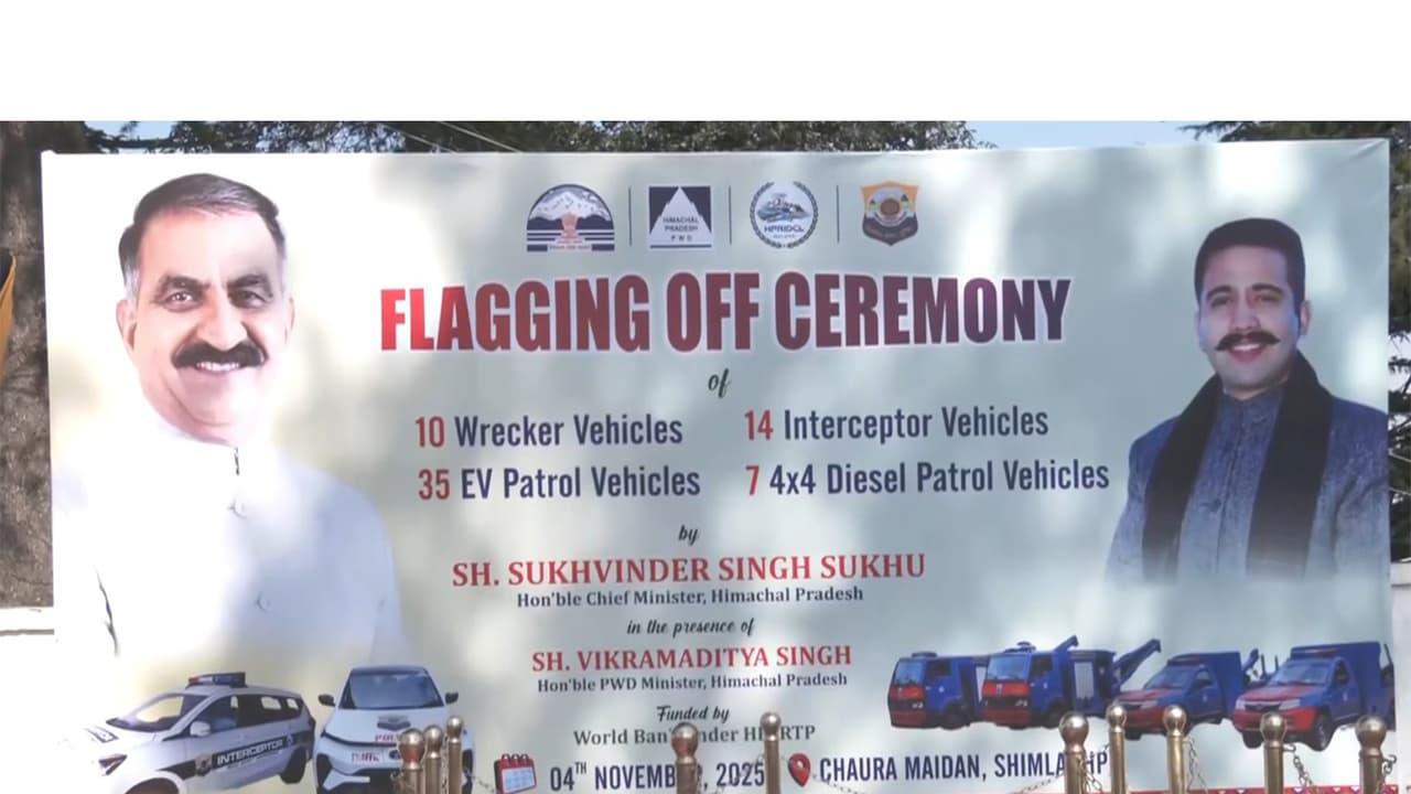 Himachal Pradesh Chief Minister Sukhvinder Singh Sukhu flagged off 66 new vehicles, including several electric vehicles (EVs), for the state police department under the Himachal Pradesh State Roads Transformation Project (HPSRTP), funded by the World Bank. The initiative marks a major step in modernising the police force and promoting green energy in the hill state.