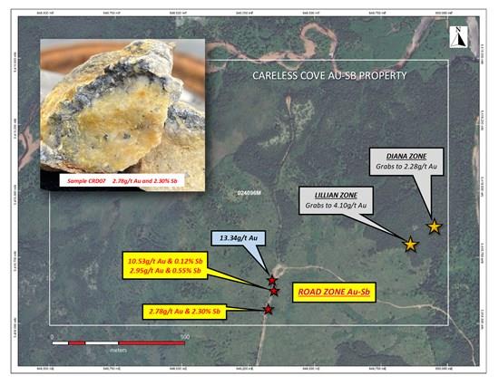 Metals Creek Samples 2.3% Antimony At Careless Cove In Newfoundland