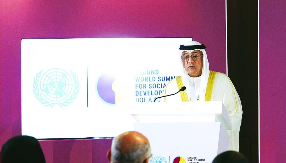 This came in a speech delivered during the Second World Summit for Social Development on Tuesday, in which he praised Qatar's outstanding efforts in hosting, preparing, and organising this leading global event in co-ordination with the UN.