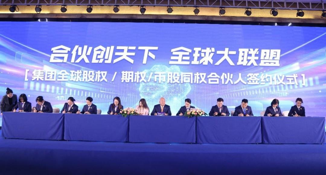 Mr. Li Jinyuan, Chairman of the Board of Directors of Tiens Group, signs the agreement with representatives of global partners