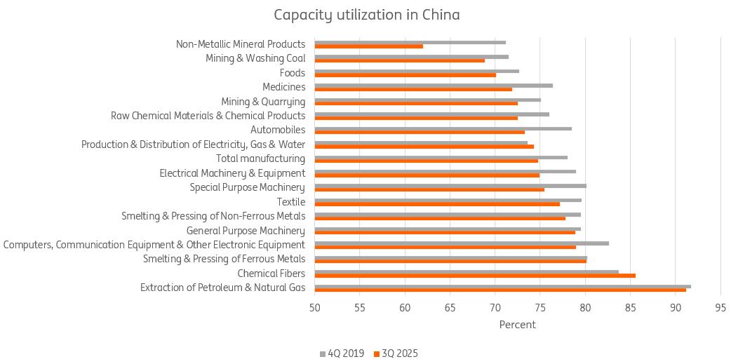 Capacity utilisation in China has fallen further in recent years