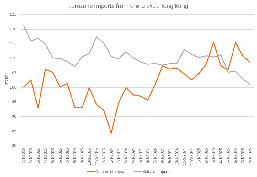 Source: Eurostat, ING Research calculations Growing reliance on China