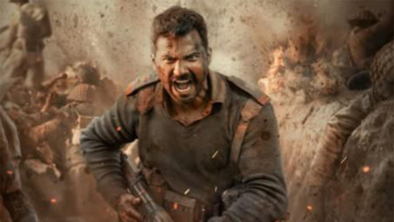 The poster shows Varun in a hard-hitting and striking portrayal as an Indian soldier on the battlefield, capturing him in an action-charged frame with a gun in hand, embodying the courage and spirit of the nation's heroes.