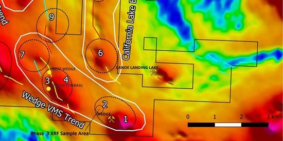 Gary Lohman, P.Geo., VP Exploration, Director, stated, "The Wedge Pre-Drill Phase 3 XRF samples continue to display exceptional copper results. In this suite of samples, the presence of Covellite (CuS) in select samples, had a direct effect on the copper grade as demonstrated by the results. The XRF results also returned 1.03% antimony (Sb), an element previously not found in abundance at the Wedge. High arsenic was present, both elements generally found associated with Au mineralization. All Phase 3 XRF sampling has been shipped to Actlabs in Fredericton NB for certified analysis including Ag and Au. With technical interpretation and drill planning by Mike Defresne at Apex Geoscience and Nine Mile Metals Technical Advisory Member, several holes are designed to test the 2 identified Len's and the western deposit at depth. We look forward to reporting our first hole."