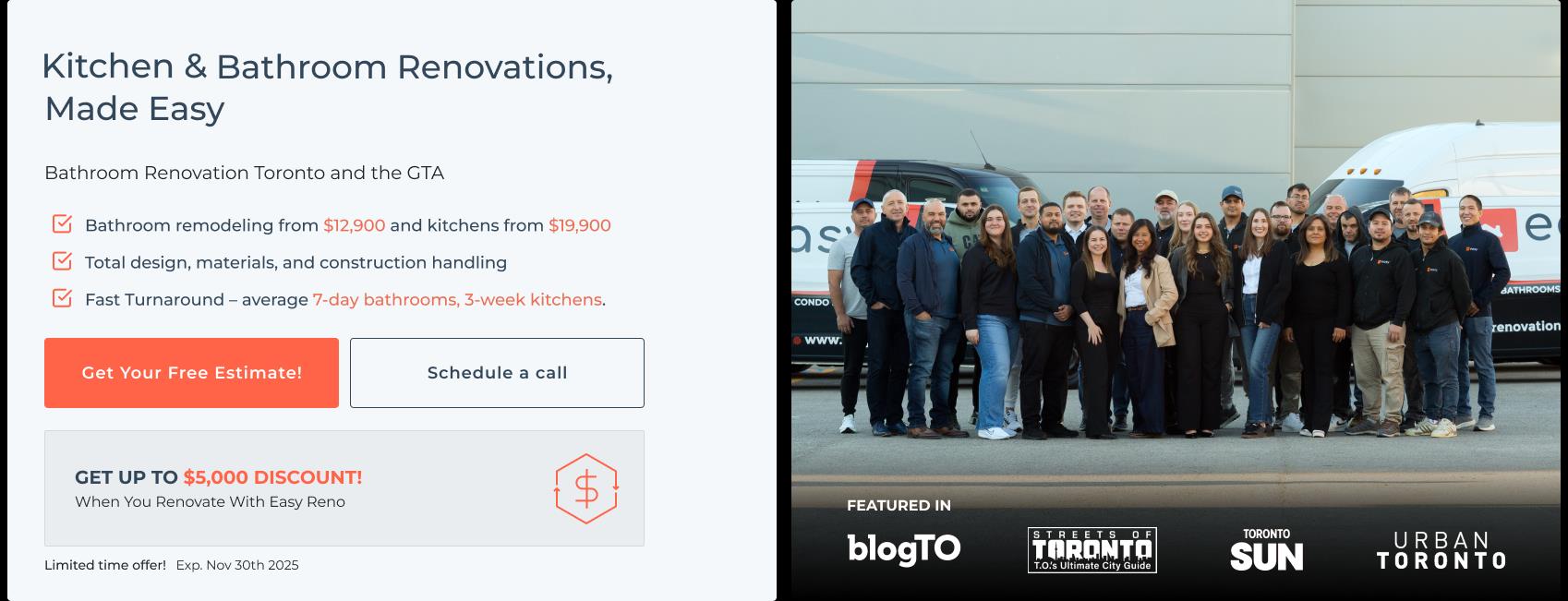 Easy Renovation is a Toronto-based home renovation company specializing in kitchen, bathroom, and full-home remodels. With a focus on innovation, transparency, and customer satisfaction, the company offers a turnkey process that includes design consultation, 3D visualization, material selection, and project management - all under one roof. Easy Renovation has been featured in BlogTO, the Toronto Sun, and Urban Toronto, and has received multiple industry awards, including the HomeStars Best of Awards and Houzz Best of Service.