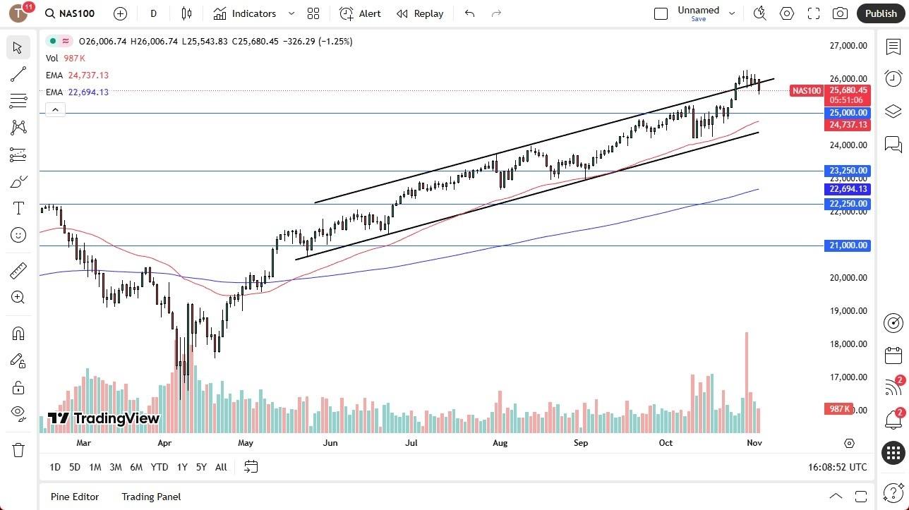 - Despite early weakness in overnight trading, the NASDAQ 100 remains firmly in an uptrend. Support near 25,500 appears to be holding, and traders anticipate potential gains toward 26,000 and beyond as year-end momentum builds.
