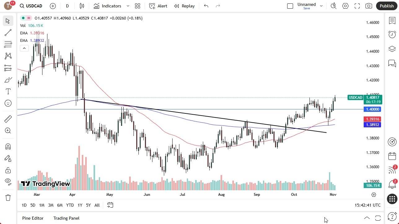 EURUSD Chart by TradingViewWhen you look at the longer-term trajectory of this pair, you can make an argument that we just broke out of some type of ugly inverted head and shoulders, which measures for a move to that 1.4250 level as well. In other words, this is a market that I think is going to make that move given enough time, especially considering that the United States and Canada are still in the midst of a bit of a trade war-and that, of course, favors the United States. Canada's economy is about 8% of the US economy, and it's actually smaller than Texas.I think a lot of people miss that point. With that being the case, and with oil in the dumps, it makes sense that the Canadian dollar continues to weaken. I like buying dips in this pair, have for several months, and will continue to do so until something fundamentally changes.Ready to trade our USD/CAD daily analysis and predictions? Check out the best currency exchange broker Canada for you.