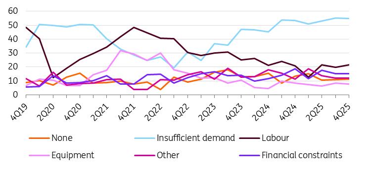 However, although German industrial orders are not encouraging, some confidence indices suggest a potential turnaround. Unfortunately, based on the current trend, it is more likely that these improving indicators are due to wishful thinking than to the start of a sustainable growth pattern within the next couple of months. There are still no clear, lasting signs of improvement in the industrial outlook. Capacity utilisation remains low in Hungary (75% in 4Q25), with a significant proportion of companies citing a lack of demand as the main factor hindering growth.