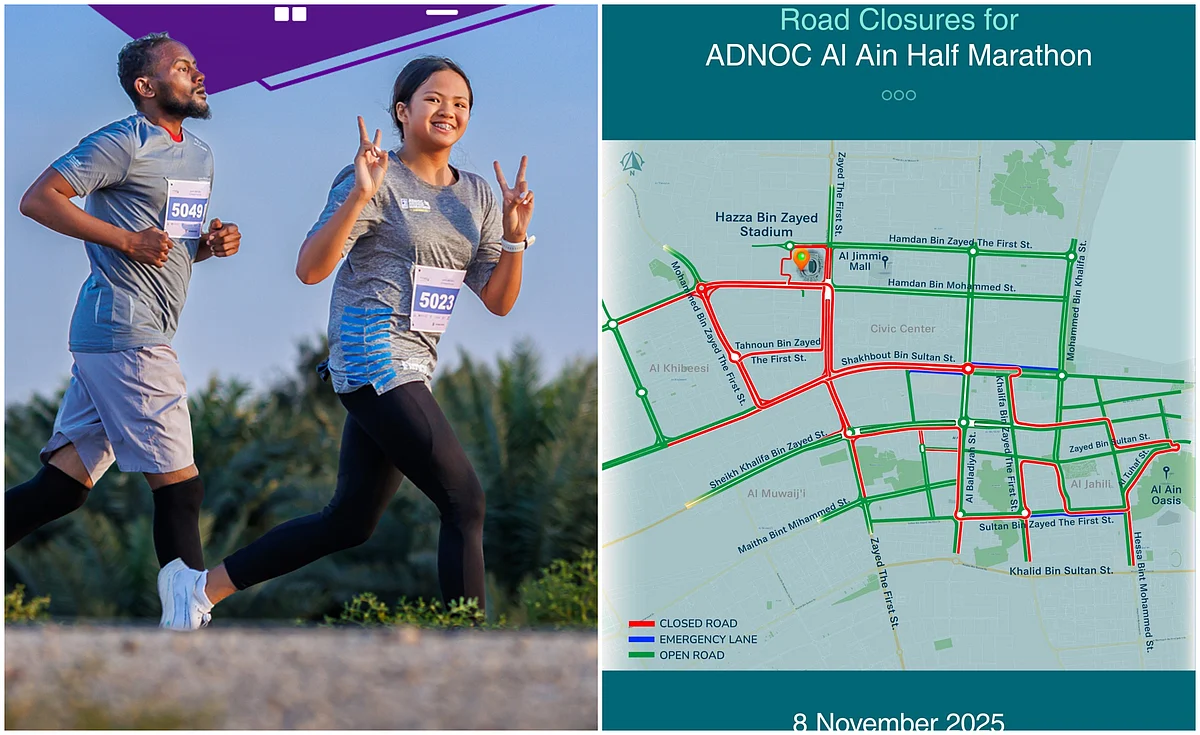 Abu Dhabi authorities have announced road closures for the ADNOC Al Ain Half Marathon happening on Saturday, November 8, at Hazza Bin Zayed Stadium. The road closures will be in effect from 2am to 10am on the same day.
