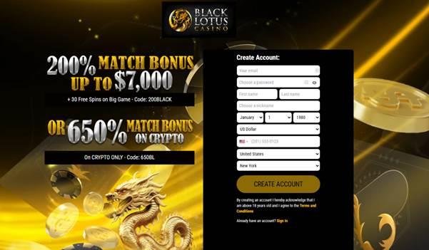 | Black Lotus | 200% match bonus up to $7,000 plus 30 free spins | 4.9/5 |