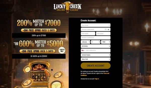 | Lucky Creek | 200% bonus up to $7,000 plus 200 free spins over five days | 4.9/5 |