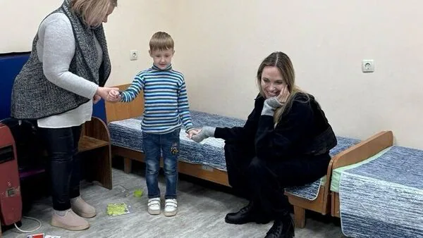 Pictures showed the actor, wearing a bulletproof vest with the Legacy of War Foundation patch, playing with local children and speaking to aid workers – marking her second visit to the war-torn country since Russia's invasion in 2022.