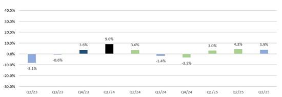 The adjusted diluted earnings per share in the third quarter of 2025 was $0.65 per share, an increase of 20.4% over the prior year's quarter.