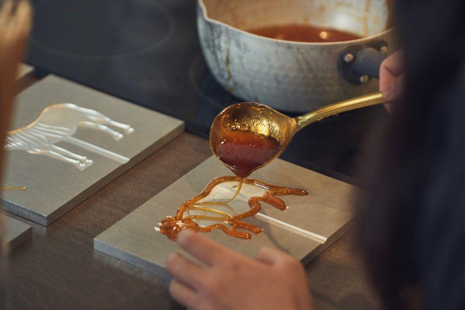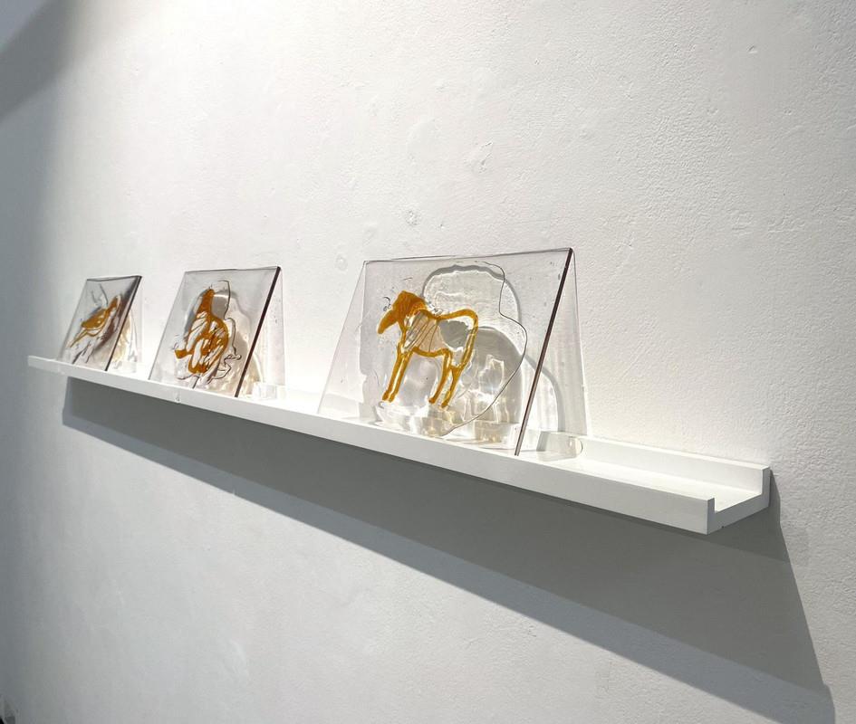 In this work, she uses sugar to create paintings which representing six species once "eaten to extinction" by humans, such as the passenger pigeon, Caribbean monk seal, Stella's manatee, great auk, Hayasaka rhinoceros, and plains zebra, all in a caramelized form. The creative process adheres strictly to intangible cultural heritage techniques: she boils sugar in a copper pot until it reaches the amber stage at 160°C, allowing the liquid to be both shaped and drawn, yet on the verge of carbonization which is a state of flux that mirrors the fragile balance of ecosystems under human intervention. These sugar sculptures, both alluring and fragile, create a subtle emotional shift between the viewer's gaze and swallowing: from desire, to hesitation, to reflection.