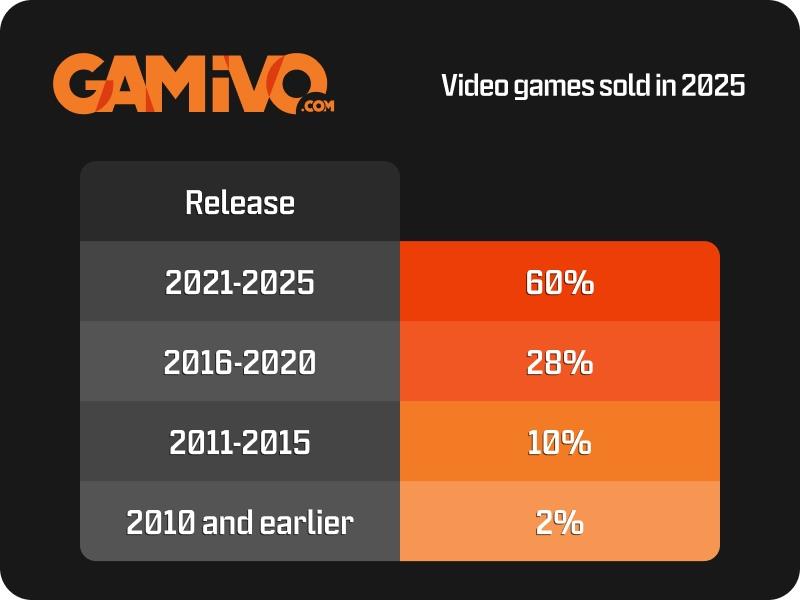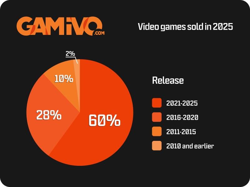 GAMIVO, a platform specialized in selling discounted digital products, particularly video games, has just published its research. The analysis of video game sales in 2025 highlights a strong consumer preference for contemporary titles. A substantial 60% of purchases comprised games released in 2021 or later. Older, yet still relatively recent, releases also accounted for a significant portion. 28% originating from the 2016-2020 period and 10% from 2011-2015. Conversely, games launched 15 years ago or earlier accounted for only 2% of sales. Industry experts note that these distribution patterns are consistent with market trends.