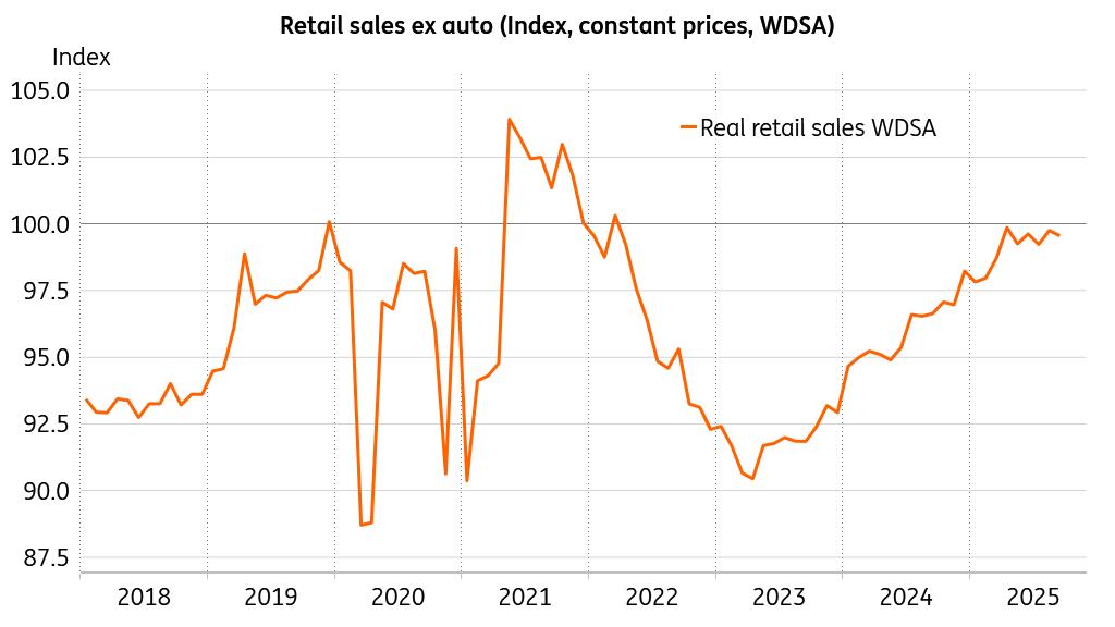Real retail sales have been muddling through in stagnation mode since April, as evidenced by the levels, which is not a sign of a confident consumer. We are wondering whether an end-of-year rally will materialise as people start preparing for Christmas. Our stance is that spending will accelerate as households channel their solid income and savings into comfort purchases during the darker, colder months. Real retail sales have already surpassed their pre-pandemic levels in a booming economy but are still below the peak of pent-up demand seen in 2021.