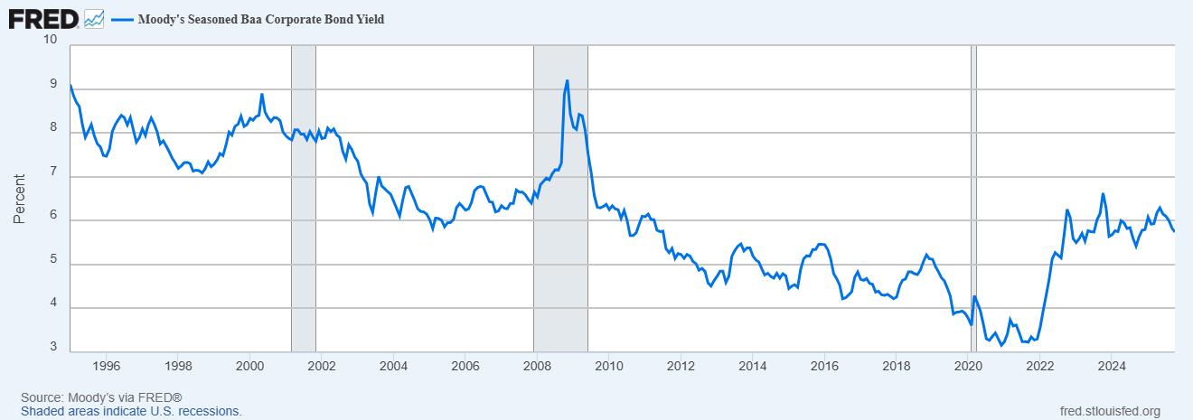That's a plausible story, but I think it's questionable how important it is for the overall economy. Passive investing really took off around 1995. But corporations' cost of borrowing actually fell from 1995 through 2021: