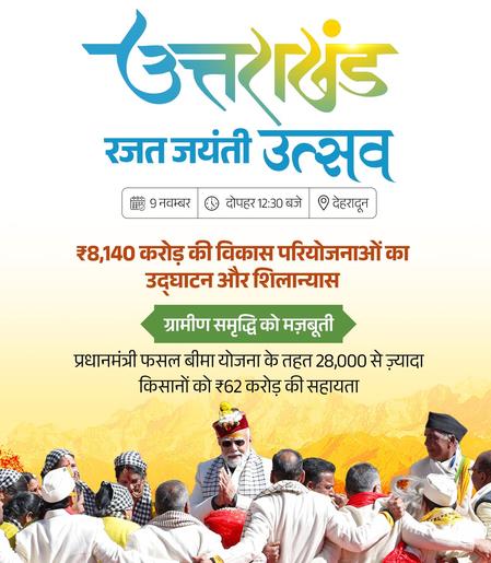 Taking to social media platform X, PM Modi said, "We are fully committed to developing and enriching Devbhoomi Uttarakhand. Tomorrow, on November 9, I will have the privilege of participating in the silver jubilee celebrations of the state's formation."