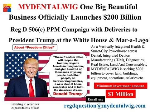 This action underscores MYDENTALWIG's alignment with the U.S. government Leader's ongoing advocacy for Freedom Cities and American-made technology ecosystems - initiatives designed to re-industrialize the United States with next-generation infrastructure and high-paying technical jobs.
