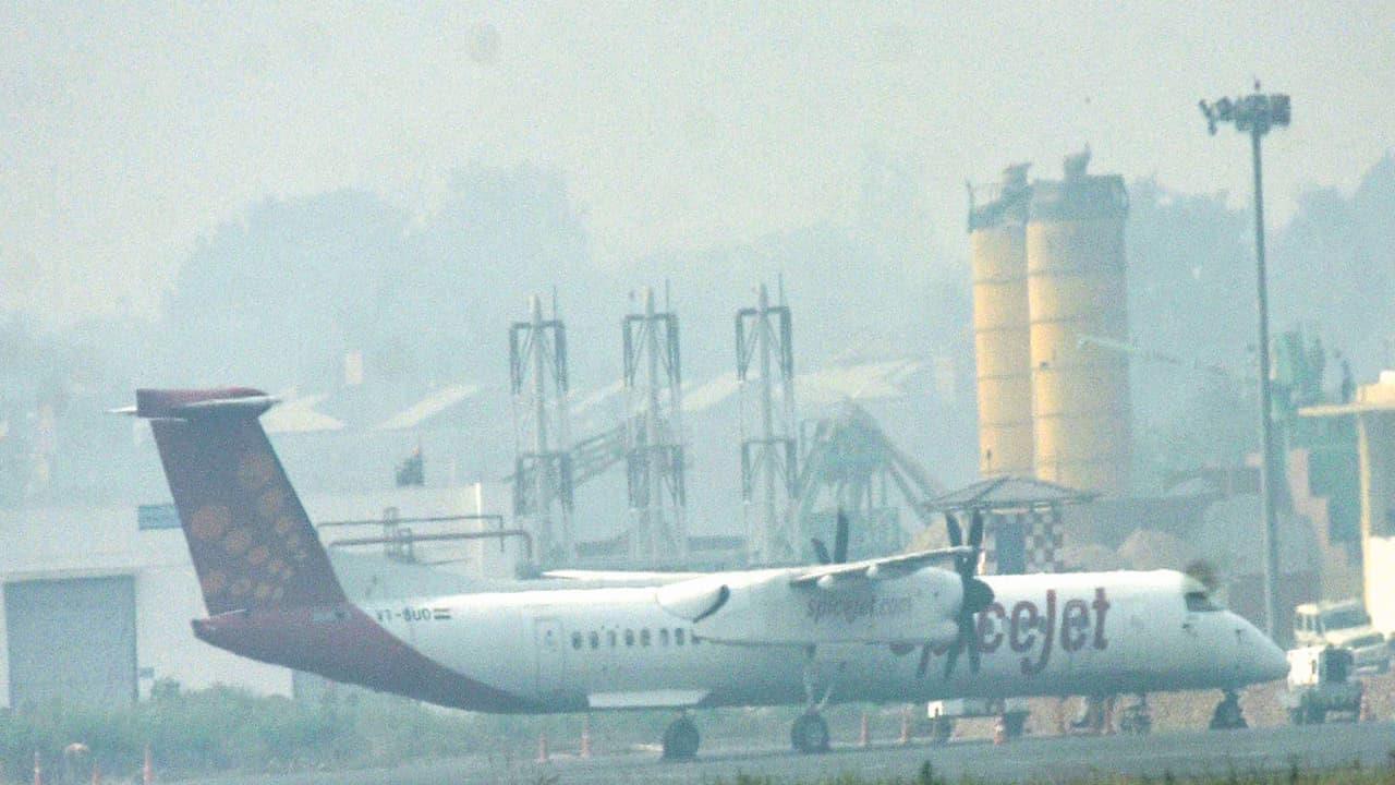 The SpiceJet Q400 aircraft reported a technical issue, prompting a full emergency to be declared at the airport as a precaution. The plane landed safely at 3:51 pm on Runway 27, and all passengers and crew were safe.