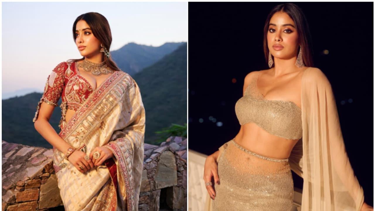 Janhvi Kapoor turned heads at her friend Deeya Shroff's grand Udaipur wedding, showcasing two strikingly different yet equally stunning looks. Known for her impeccable sense of fashion, the Mr. & Mrs. Mahi star embraced traditional elegance during the day and shimmered in golden glamour by night