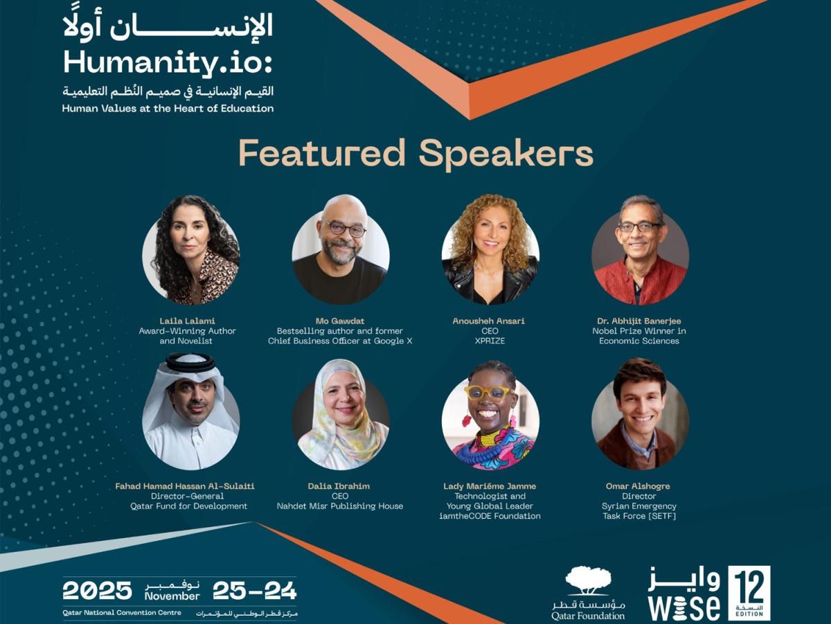 Doha, Qatar: The World Innovation Summit for Education (WISE), an initiative of Qatar Foundation, announced its lineup of speakers for the WISE 12 Summit, taking place on 24–25 November 2025 at the Qatar National Convention Centre under the theme 'Humanity: Human Values at the Heart of Education.'