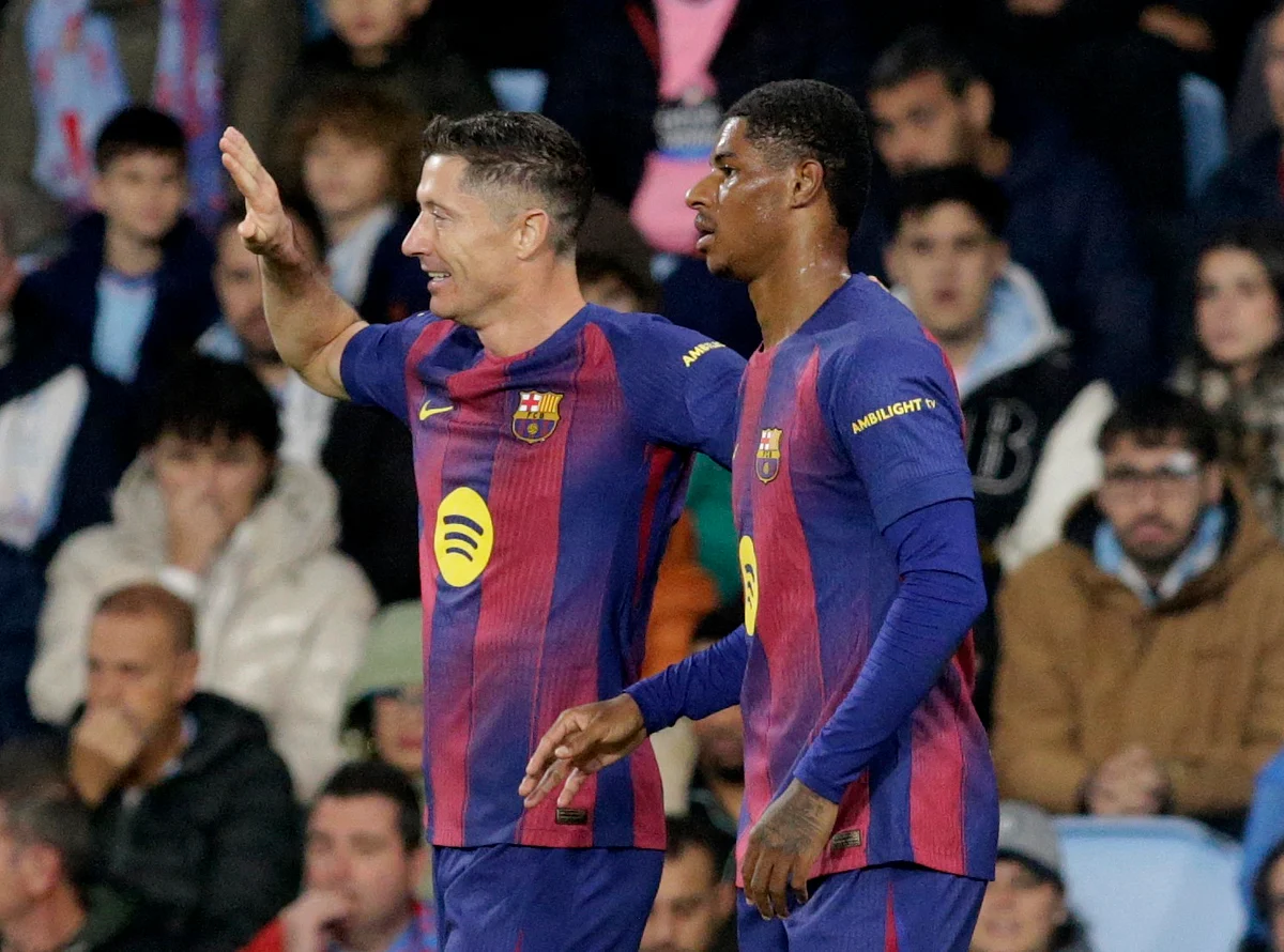 Lewandowski completed his hat trick with a header from Rashford's corner after 73 minutes to wrap up the win.