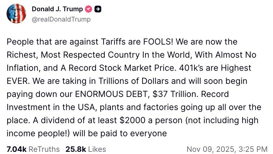 (MENAFN- Daily Forex) Ripple is now trading near $2.45, and the rally raises hopes of holding above $2 amid conflicting signals's Tariff Dividend Announcement Crypto RecoveryOn Sunday, President Trump announced that most Americans will receive a $2,000“dividend” from the tariff revenue and criticized the opposition to his sweeping tariff policies.“A dividend of at least $2000 a person, not including high-income people, will be paid to everyone,” Trump said on Truth Social. Source: Donald J. TrumpThis is expected to inject approximately $400 billion into the economy by early 2026.Treasury Secretary Scott Bessent confirmed the plan could include tax cuts on tips and overtime, framing tariffs as a tool to rebalance trade and reward domestic production.“With tariffs, President Trump is rebalancing trade and bringing back U.S. manufacturing after decades of decline,” Bessent said in an X post on Sunday, adding:“Factories are reopening, high-paying jobs are returning, and America is winning again.”The proposal, which requires congressional approval, echoes past stimulus efforts but on a grander scale.Crypto markets reacted instantly, with the total market cap rising 4.7% over the last 24 hours to $3.58 trillion.Bitcoin (BTC) led the gains, up 4% to trade at $106,200 and Ether (ETH) gained 5/8% to $3,600. XRP gained the most among the top 10 cryptocurrencies, rising as much as 10% from a low of $2.23 on Sunday to an intra-day high of $2.47 on Monday. Its trading volume jumped 55% to $4.3 billion, reinforcing the intensity of the sell-side activity.24-hour performance of top cryptocurrencies. Source: Coin360Analysts link the move to XRP's strength in cross-border payments, which could gain from tariff-driven shifts in global trade flows Bullish Swell Announcement to Boost XRP PriceAt Swell 2025 in New York, Ripple announced a $500 million funding round, pushing its valuation to $40 billion. Led by Fortress and Citadel affiliates, with participation from Pantera, Galaxy, Brevan Howard, and Marshall Wace, the capital will fuel expansion in custody, stablecoins, and prime brokerage.Source: RippleCEO Brad Garlinghouse called it“validation of our long-term vision,” following a $125 million SEC settlement and $95 billion in payment volume this year.RLUSD, Ripple's stablecoin, surpassed $1 billion in market cap and now anchors the Ripple Prime platform. A Mastercard-WebBank-Gemini pilot enables onchain fiat card settlements via XRPL-a regulatory breakthrough. BlackRock's Maxwell Stein praised Ripple's infrastructure, positioning XRP as a core liquidity layer for tokenized assets.For XRP, the implications are strong. ISO 20022 compliance and On-Demand Liquidity align with tariff-induced remittance growth. A $1.5 trillion cross-border market could shift toward XRPL if trade policies favor efficiency. 21Shares' updated ETF filing on Nov. 8 starts a 20-day SEC review, with approvals pending for several other spot XRP ETFs.These, together with whale accumulation and RLUSD demand, back XRP's case for a sustained rally above $3 Profit-Taking Divergence Signals WeaknessDespite the rally, onchain data reveals growing overhead pressure from whales and long-term holders. Data from the onchain data provider Glassnode reveals that Long-term holders- those who have held XRP for more than 155 days - have increased profit-taking from $65 million daily in September to $220 million now-a 240% jump. This profit-realization accompanied a 25% drop in XRP price from $3.09 to $2.30.This“distribution into weakness” contrasts with past cycles and has pushed unrealized profits to 2024 lows, according to Glassnode.“This divergence underscores distribution into weakness, not strength.”XRP realized profit margin. Source: GlassnodeFrom a technical perspective, XRP's latest recovery has invalidated a classic bear flag continuation setup, further reinforced by the break above the flag's upper boundary at $2.42.The bear flag pattern projected a drop toward $1.69, but it appears bulls had other plans and could avoid this scenario if they keep the price above $2.50.XRP/USD daily chart. Source: TradingViewThe next major hurdle for XRP lies between $2.6 and $2.80, areas defined by all the major moving averages. This is where millions in XRP have recently been acquired, according to the Glassnode Cost Basis Distribution Heatmap.Overcoming this would signal strength among the bulls, clearing the path for a return toward the $3 psychological level or to the seven-year high above $3.66.Ready to trade our analysis of Ripple? Here's our list of the best MT4 crypto brokers worth reviewing.