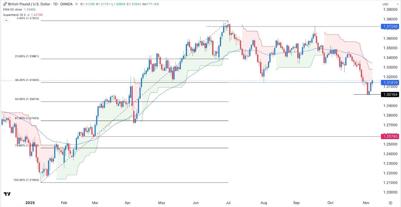 EURUSD Chart by TradingViewGBP/USD Technical AnalysisThe daily timeframe chart shows that the GBP/USD pair has remained under pressure in the past few months. It formed a double-top at 1.3725 and a neckline at 1.3141. This neckline has coincided with the 38.2% Fibonacci Retracement level. It has also retested that level, confirming a break-and-retest pattern.The pair has remained below the 50-day Exponential Moving Average (EMA). It has also remained below the Ichimoku cloud and the Supertrend indicators.Therefore, the pair will likely continue falling as sellers target the next key support at 1.3015. A move below that level will point to more downside, potentially to the 50% retracement at 1.2940.Ready to trade our free daily Forex trading signals? We've shortlisted the best UK forex brokers in the industry for you.