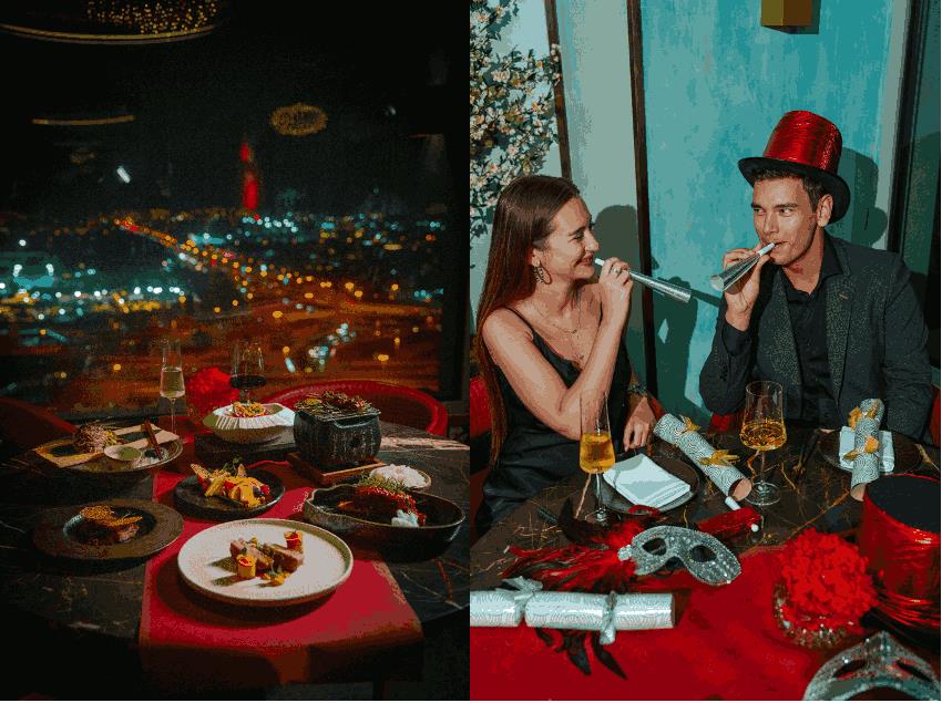 The evening promises a feast for the senses, featuring a delectable 7-course dinner crafted to delight every palate, complemented by live entertainment to keep the energy high as midnight approaches.