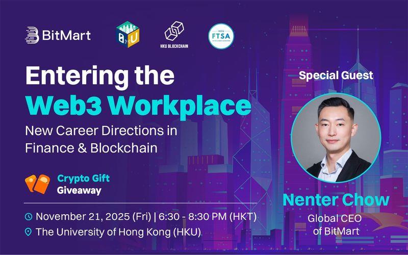 - Fireside Chat: Career pathways from traditional finance to Web3 Discussion: How digital assets, AI, and decentralized systems are reshaping global industries Audience Q&A: Practical guidance for students entering emerging technology fields Attendees will receive a crypto participation gift provided by BitMart
